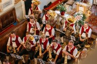 Von Freitag, 27.06.2025 bis Sonntag, 29.06.2025 fuhren wir gemeinsam mit allen Musikanten nach Bistrica ob Sotli ins schöne Slowenien zu unserem Partnerchor (gemischter Chor Bistrica ob Sotli). Am Freitag, 27.06. kamen wir am Nachmittag in Bistrica bei hohen Temperaturen und bestem Wetter an. Die Wiedersehensfreude war groß uns der Startschuss in ein tolles Wochenende war gegeben. Nach der Quartierverteilung trafen wir uns am Abend zum Standkonzert in einem nahegelegen Weingut. Hier spielten wir gemeinsam mit unserem Partnerchor für die Gemeinde das Standkonzert. Am Samstag, 28.06. begaben wir uns zum Tagesausflug nach Konstanjevica. Da auch am Samstag hochsommerliche Temperaturen herrschten, ging es zum Freibad-am Fluss Krka. Am Abend stand dann der musikalische Höhepunkt des Wochenendes an: das Kirchenkonzert auf Svete Gore. Auf dem Berg angekommen konnten wir über einen herrlichen Ausblick staunen. Ein unvergessliches Konzert unter der Leitung von Markus Kieble und Spela Drašler, welches für Gänsehautmomente bei allen Besuchern und Musikanten sorgte, machte auch dieses Wochenende zu einem besonderem. Am Abend wurde gemeinsam getanzt, gelacht und gesungen. Am Sonntag, 29.06. stand dann schon der letzte gemeinsame Tag an. Besonderes Highlight an diesem Tag: das Dorffest in Bistrica, auf welchem Sašo Avsenik und seine Oberkrainer aufgetreten waren. Auch hier wurde nochmals gefeiert und der Tag genossen. Am späten Nachmittag traten wir dann wieder die Heimreise ins Allgäu an. Was bleibt sind unvergessliche und schöne Stunden welche die Verbindung zwischen der Musikkapelle Schloß Zeil e.V. und dem gemischten Chor aus Bistrica ob Sotli weiter stärken und zu etwas ganz besonderem machen. Wir alle sind stolz auf die nun seit 1997 bestehende Freundschaft und freuen uns auf ein Wiedersehen.