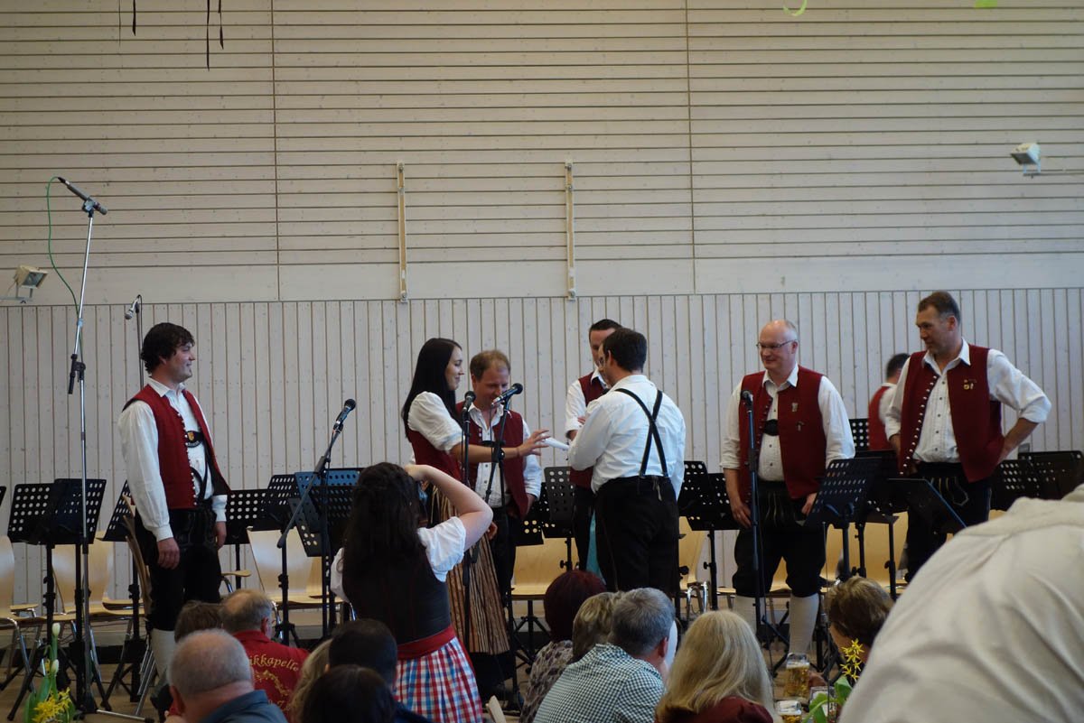 Am Samstag den 16. April traten wir beim Stimmungswettbewerb in Christazhofen an. Um halb sieben fuhren wir in Unterzeil mit dem Bus los, so dass wir pünktlich um halb acht zur Auslosung der Reihenfolge in Christazhofen waren. Die Vorstände und Dirigenten der drei Kapellen aus Schloß Zeil, Rohrdorf und Beuren zogen zusammen mit dem Vorstand der Veranstaltungskapelle MV Siggen die Reihenfolge.