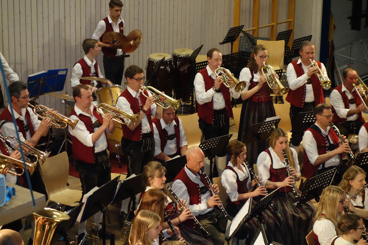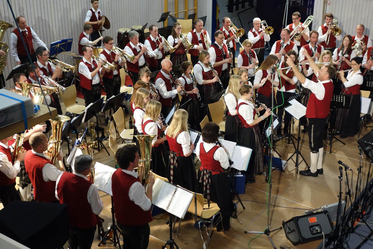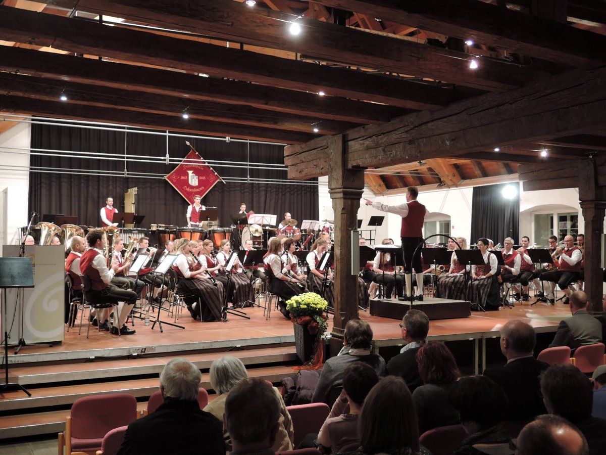 Am 5. November waren wir zum Gemeinschaftskonzert mit der Stadtkapelle Ochsenhausen in den Bräuhaussaal nach Ochsenhausen eingeladen. Wir durften den ersten Konzertteil bestreiten und gaben unter anderem das irische "Lord Tullamore" und die bekannten Melodien aus den James-Bond-Filmen in "James Bond 007 Selections" wieder. Dank der humorvollen Ansagen und guten Darbietung konnten wir das Publikum vollauf begeistern, so dass wir um eine Zugabe nicht herum kamen. Mit der Polka "Augenblicke" verabschiedeten wir uns. Durch die gute Bewirtung in der Pause konnten sich alle Zuhörer auf den Teil der Stadtkapelle Ochsenhausen freuen, welche fulminant mit dem Schlagzeugsolo "Concertino for Percussion and Wind Orchestra" begann. Auch unser Zögling und heutiger Dirigent der Stadtkapelle Ochsenhausen Thomas Wolf führte gekonnt durch das Programm und konnte unter anderem mit "Imagine" ein weiteres Solostück am Saxophon ankündigen. Nach dem Ende des tollen Konzertes ließen wir den Abend im Gewölbekeller zusammen mit der Stadtkapelle Ochsenhausen ausklingen, schlossen neue Freundschaften und freuen uns jetzt schon auf den Gegenbesuch in Unterzeil.