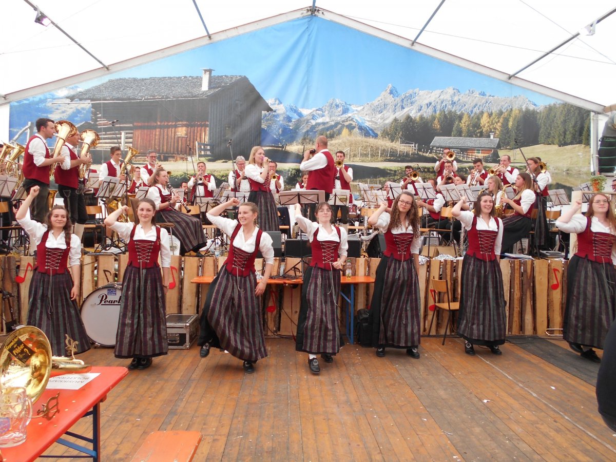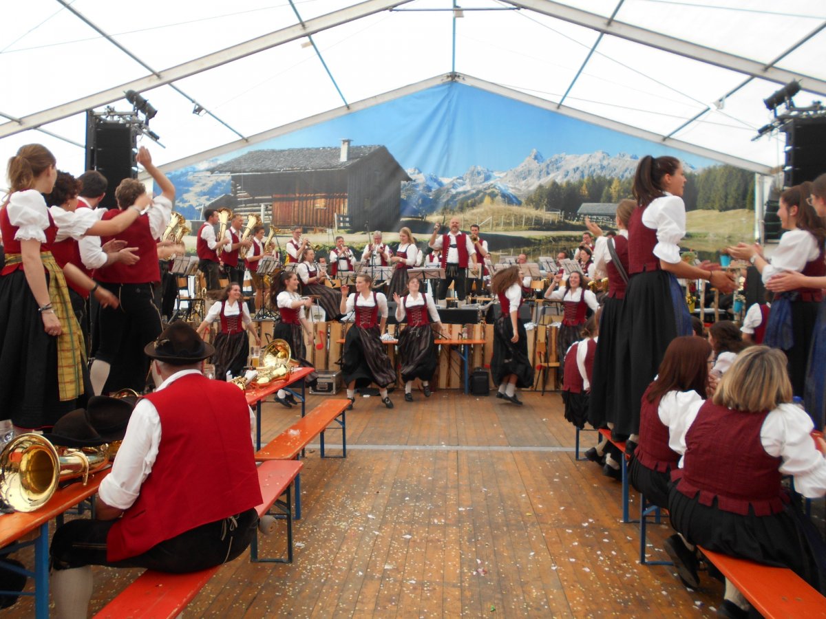 Nach langer Zeit konnten wir am 21.05.2023 endlich wieder einen Fahneneinmarsch spielen. Mit großer Vorfreude trafen wir uns am Sonntagnachmittag bei wunderschönem Wetter in Merazhofen. Gegen 13:30 Uhr nahmen wir dann die Bühne ein und warteten auf die Musikkapellen welche den Festumzug gestalteten. Als dann die ersten Kapellen am Festzelt ankamen, füllte sich das Zelt zügig und die Lust nach guter Musik und dem ein oder anderen Gläschen war deutlich zu spüren. Zu „Mein Heimatland“ und „Deutschmeister-Regiments-Marsch“ wurden die 18 Kapellen während des Fahneneinmarsches gefeiert. Sofort befand sich das gesamte Festzelt auf den Bierbänken. Anschließend konnten wir mit unserem bunten Programm von Traditionell bis Schlager und Pop für richtig gute Stimmung im Zelt sorgen. Weitere Highlights waren unsere „Tanzmädels“, die das Zelt zum Tanzen animieren konnten. Bis ca. 18:00 Uhr unterhielten wir das Festzelt, dann räumten wir die Bühne. So ging dieser schöne Nachmittag zu Ende an dem wirklich jedes Musikerherz höher geschlagen hat.